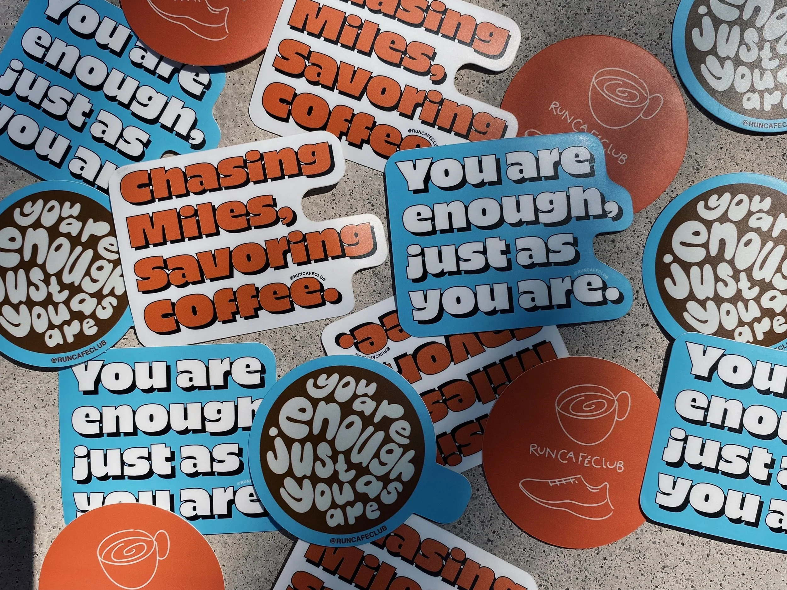 T-shirt RunCaféClub 25,00 € T-shirt "You Are Enough, Just As You Are" beige 25,00 € T-shirt "You Are Enough, Just As You Are" white&blue 25,00 € Tote-Bag RunCaféClub 12,00 € "You are enough, just as you are." - Sticker 2,00 € "Chasing Miles, Savoring Coffee." - Sticker 2,00 € Cup RunCaféClub - Sticker 2,00 € Logo RunCaféClub - Sticker 2,00 € Pack 4 stickers 7,00 €